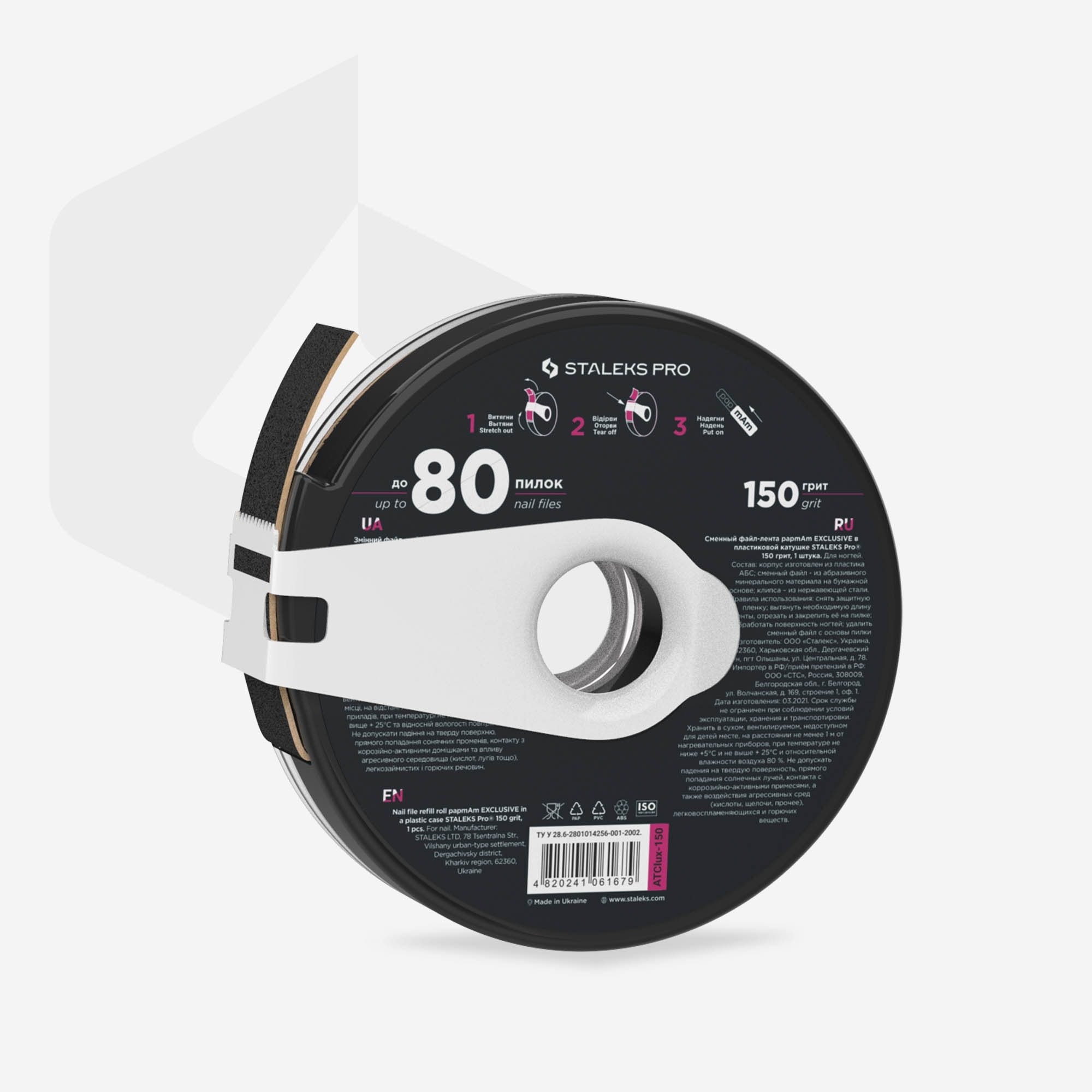 Abrasiveness 150 grit is designed for filing length and thickness, as well as for the final processing of artificial nails.