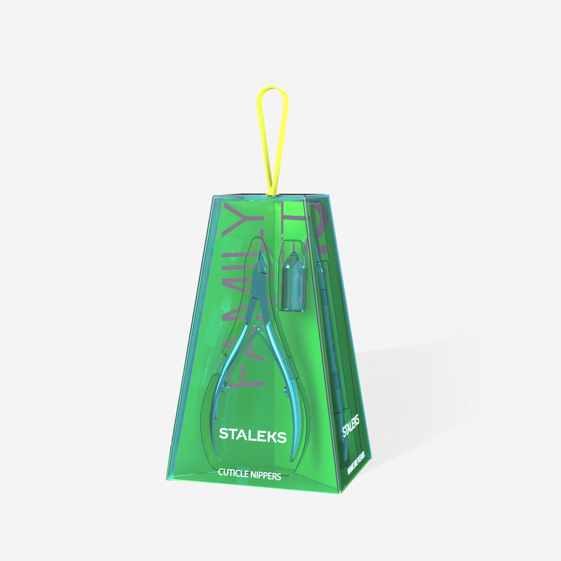 - The set is packed in a bright plastic box shaped like a truncated pyramid with the Staleks logo. This packaging not only protects the tools from damage but also catches attention with its unusual design, making it an ideal and practical gift for yourself or your loved ones.